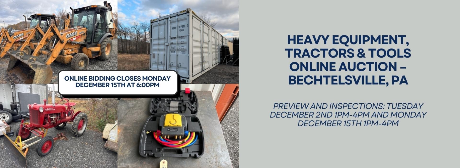 Heavy Equipment, Tractors & Tools Online Auction – Bechtelsville, PA Dec 15th