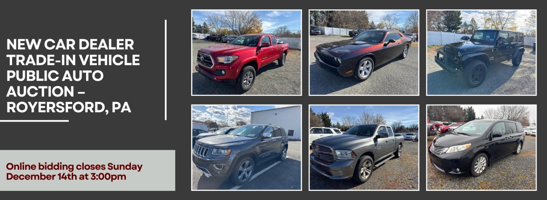 New Car Dealer Trade-In Vehicle Public Auto Auction – Royersford, PA Dec 14th